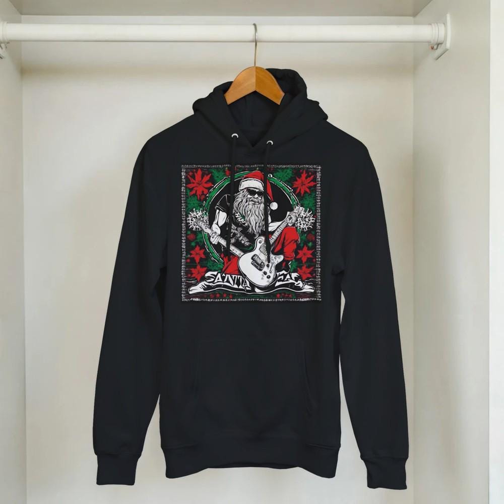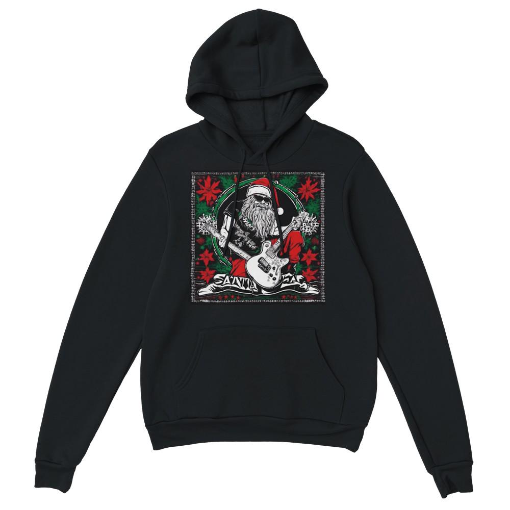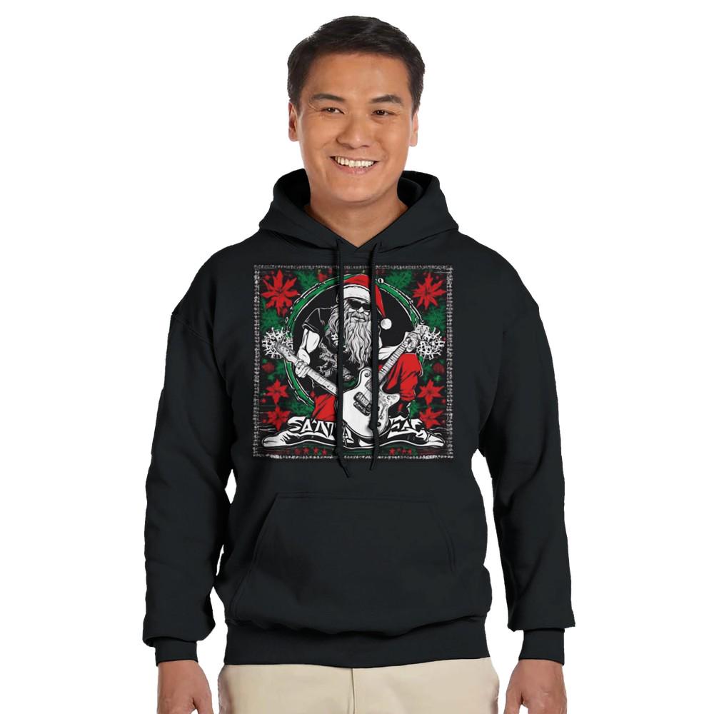 Santa Rocks! Christmas Hoodie - Holiday Music Lover Gift Xmas Sweatshirt Rock N Roll Style
