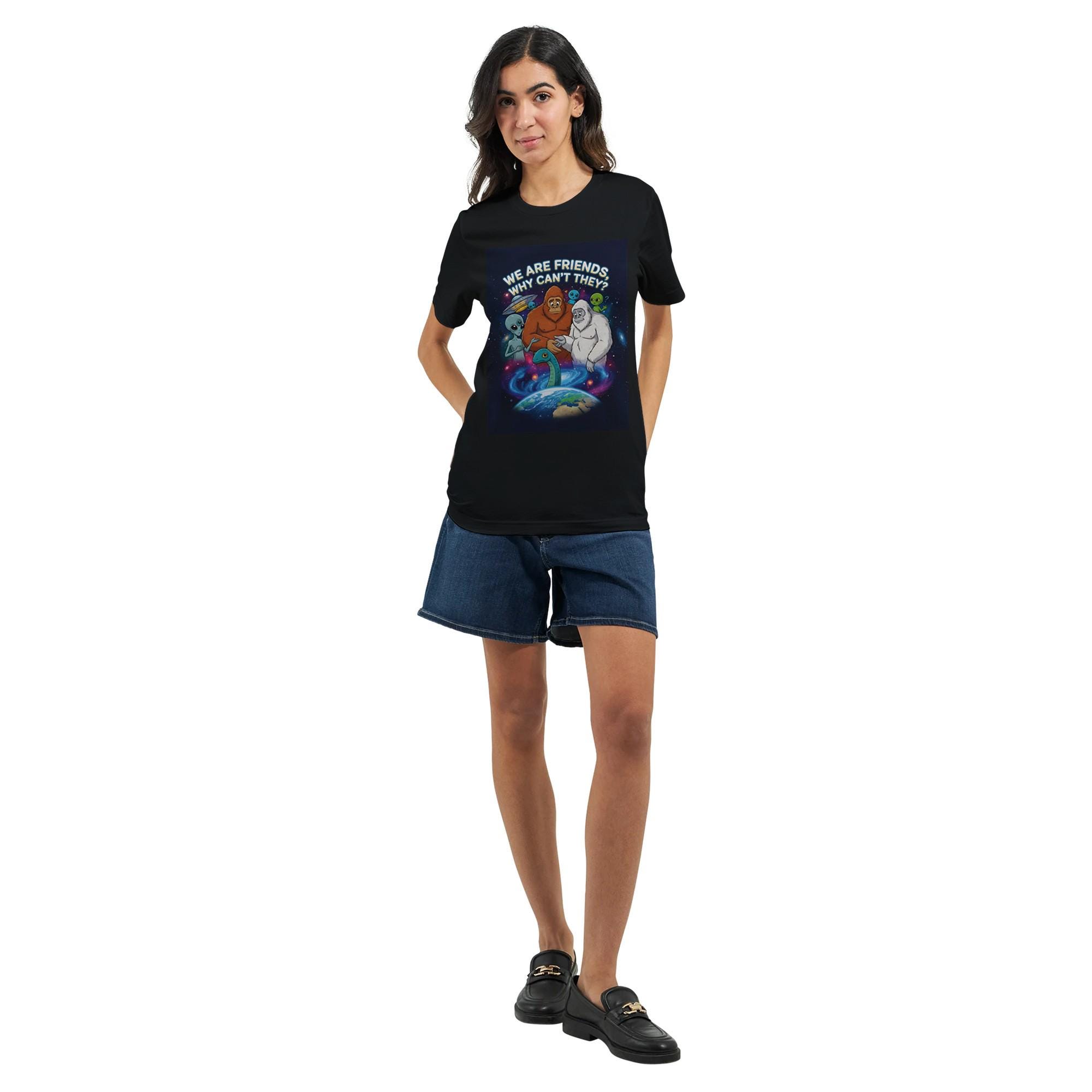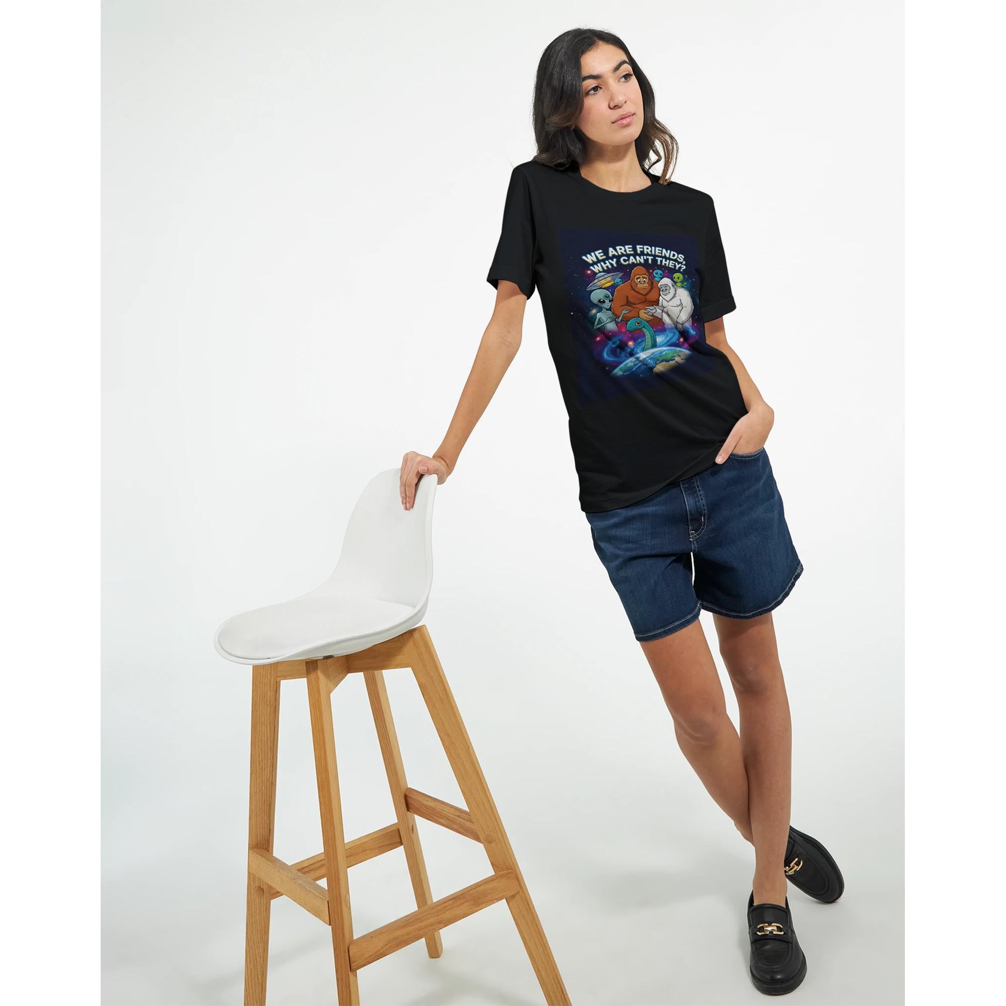 Elevate your wardrobe with this enchanting Cryptids & Aliens Unite T-Shirt. Explore the cosmos in style and make a statement about embracing our differences, one quirky cryptid at a time. Order yours today and let your outfit take you to the stars!