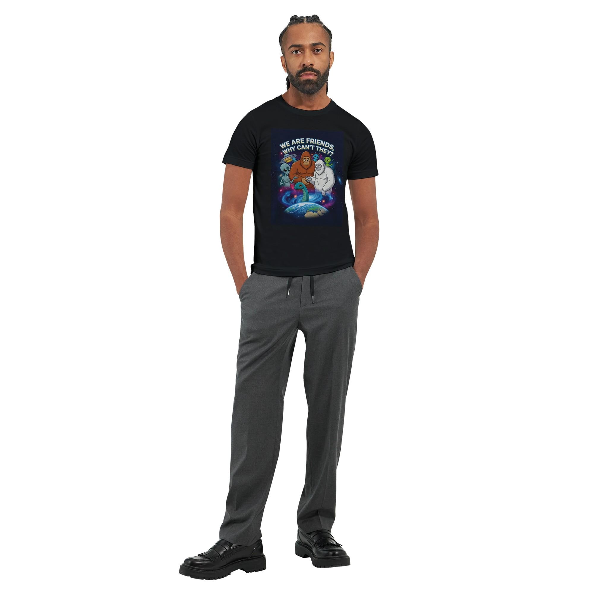 Designed specifically for vibrant, clean prints, this t-shirt showcases your love for cryptozoology and space exploration. Available in a wide color range, you can easily personalize your look to match your style. Whether you wear it to a cozy gathering, while stargazing, or even as a conversation starter at your next event, this t-shirt is bound to make you the center of attention.
