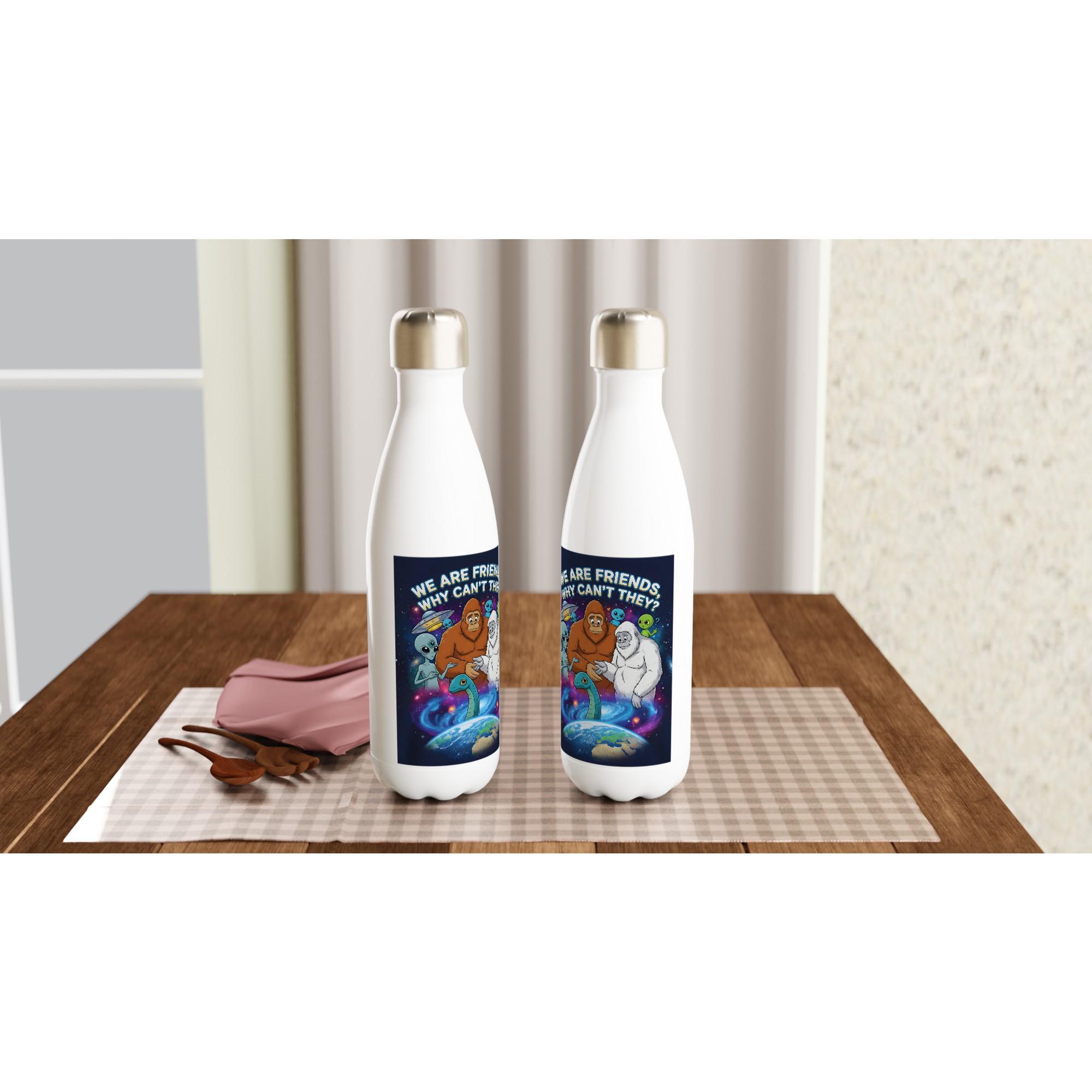 Whimsical Cosmic Cryptids Water Bottle: 17oz Insulated Flask with Friendly Aliens & Sasquatch Design