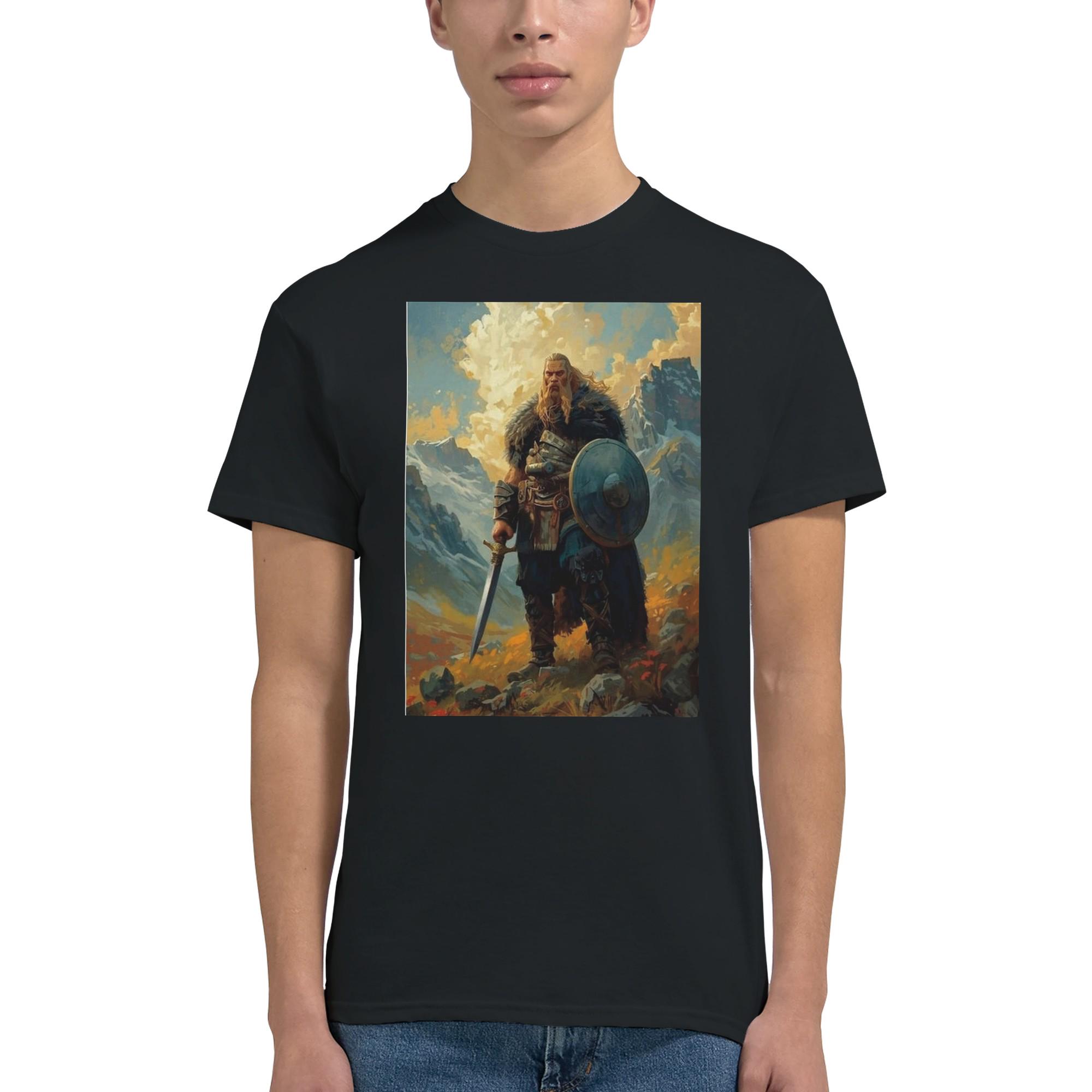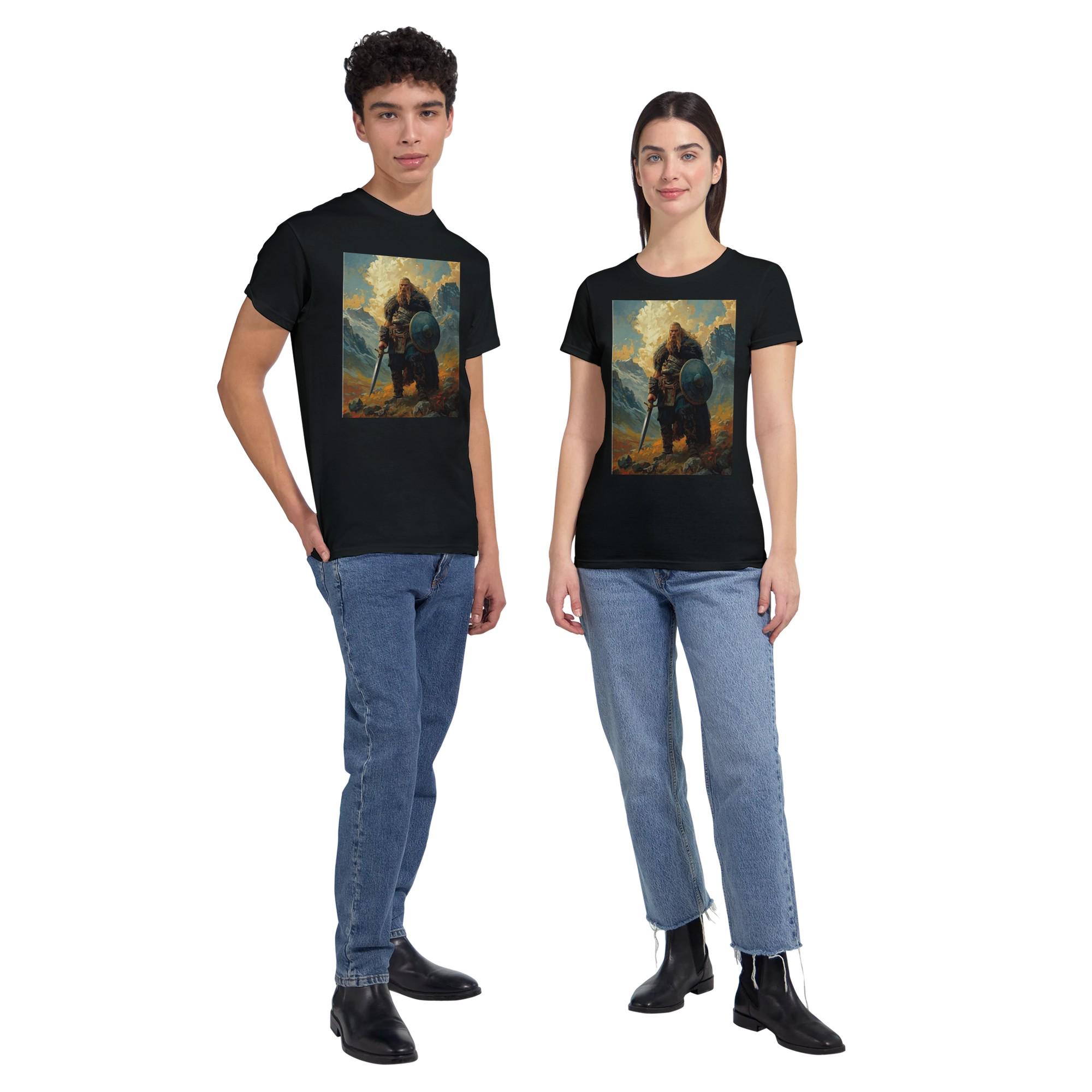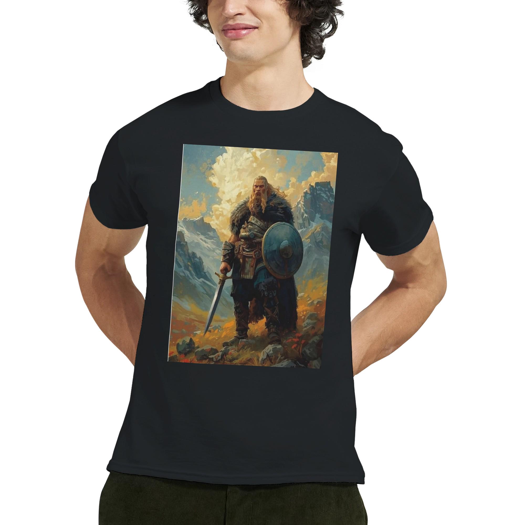 Step into the wild with our stunning 'Viking in the Wilderness' t-shirt, an homage to Norse mythology and the spirit of adventure. This heavyweight cotton t-shirt combines a classic fit with an incredible design that showcases a fearless Viking standing majestically among nature, evoking the mystery and magic of Norse spirits.