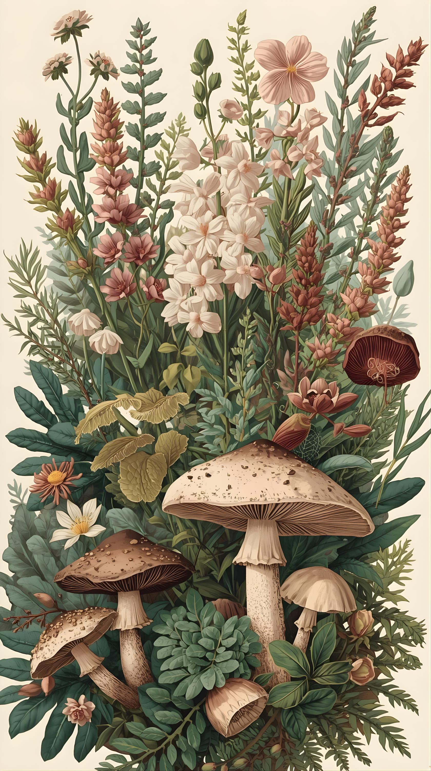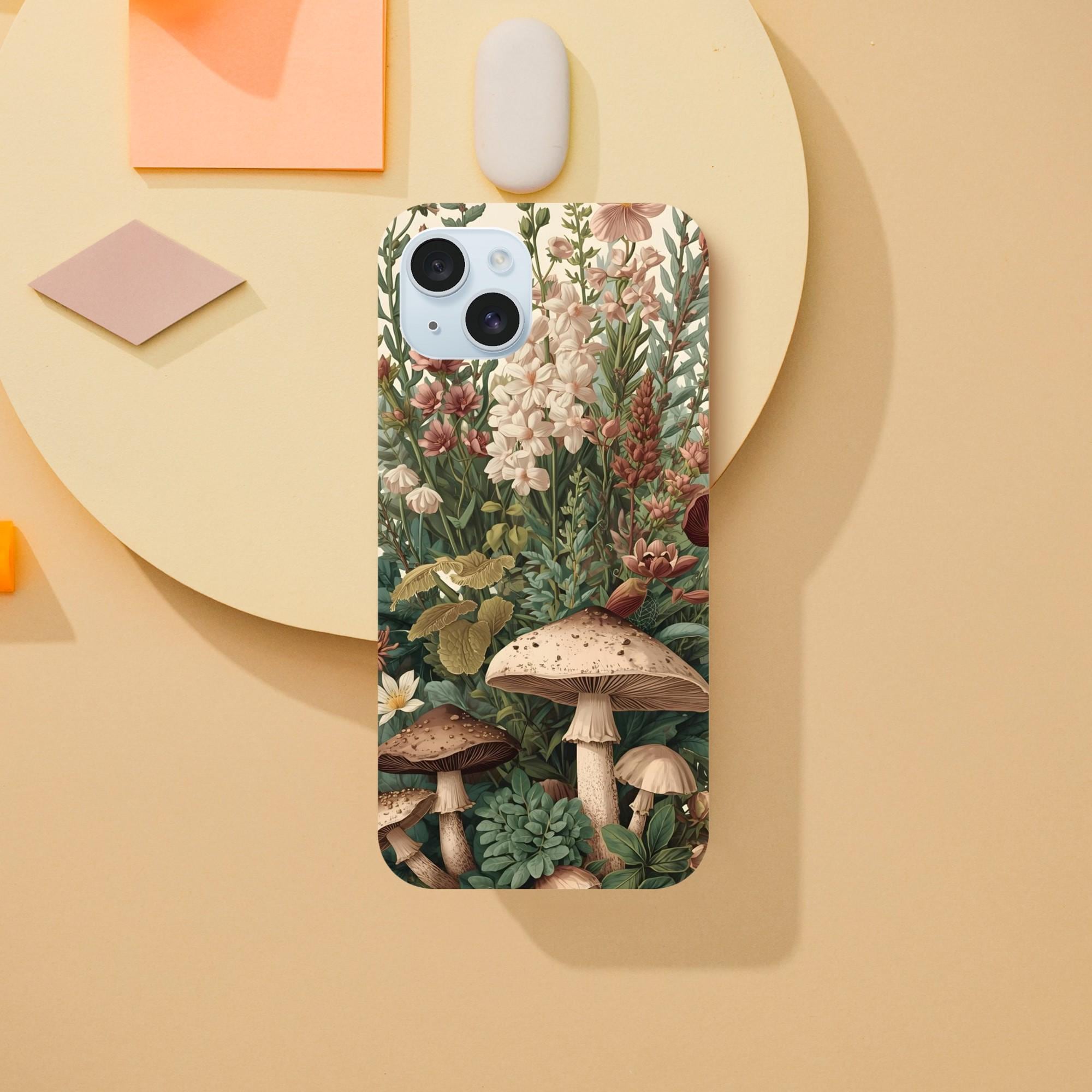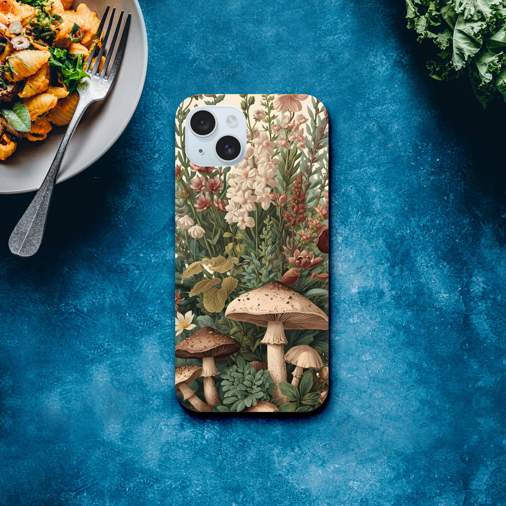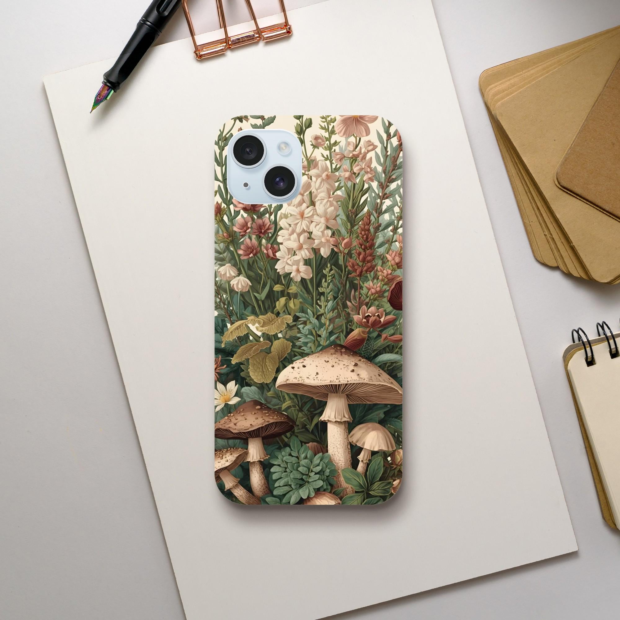 Victorian Botanical Phone Case - Wildflowers Mushrooms Design Elegant Nature Art Forest Green Sage Rose