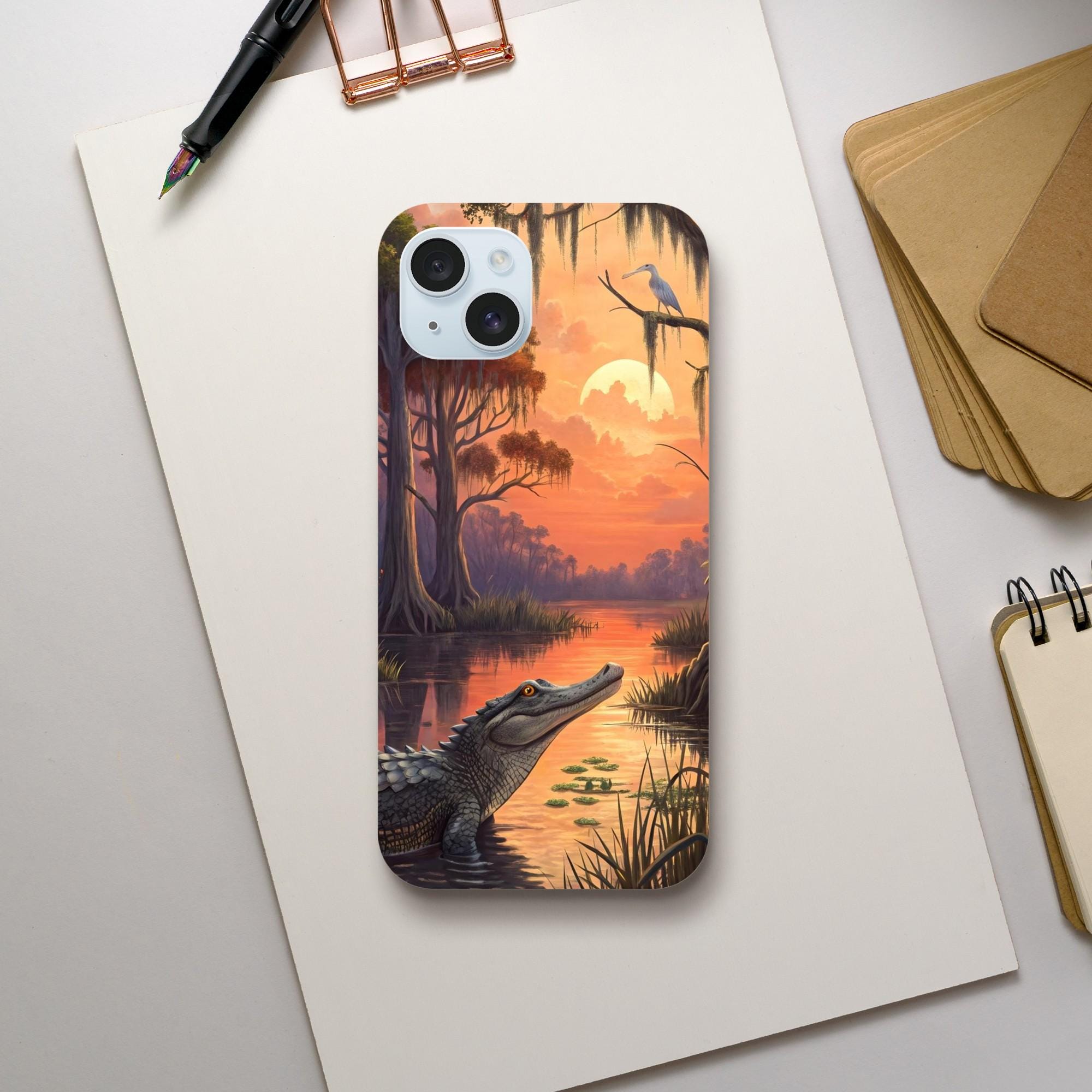 Dive into the wild with our Alligator in an Everglade Swamp iPhone Case! 🐊 This tough case is perfect for nature lovers and adventure seekers who want to add a touch of the wild to their everyday essentials. Featuring a stunning wraparound design of an alligator lounging in a lush Everglade swamp, this phone case isn't just a protective layer; it's a statement piece that reflects your love for the great outdoors.