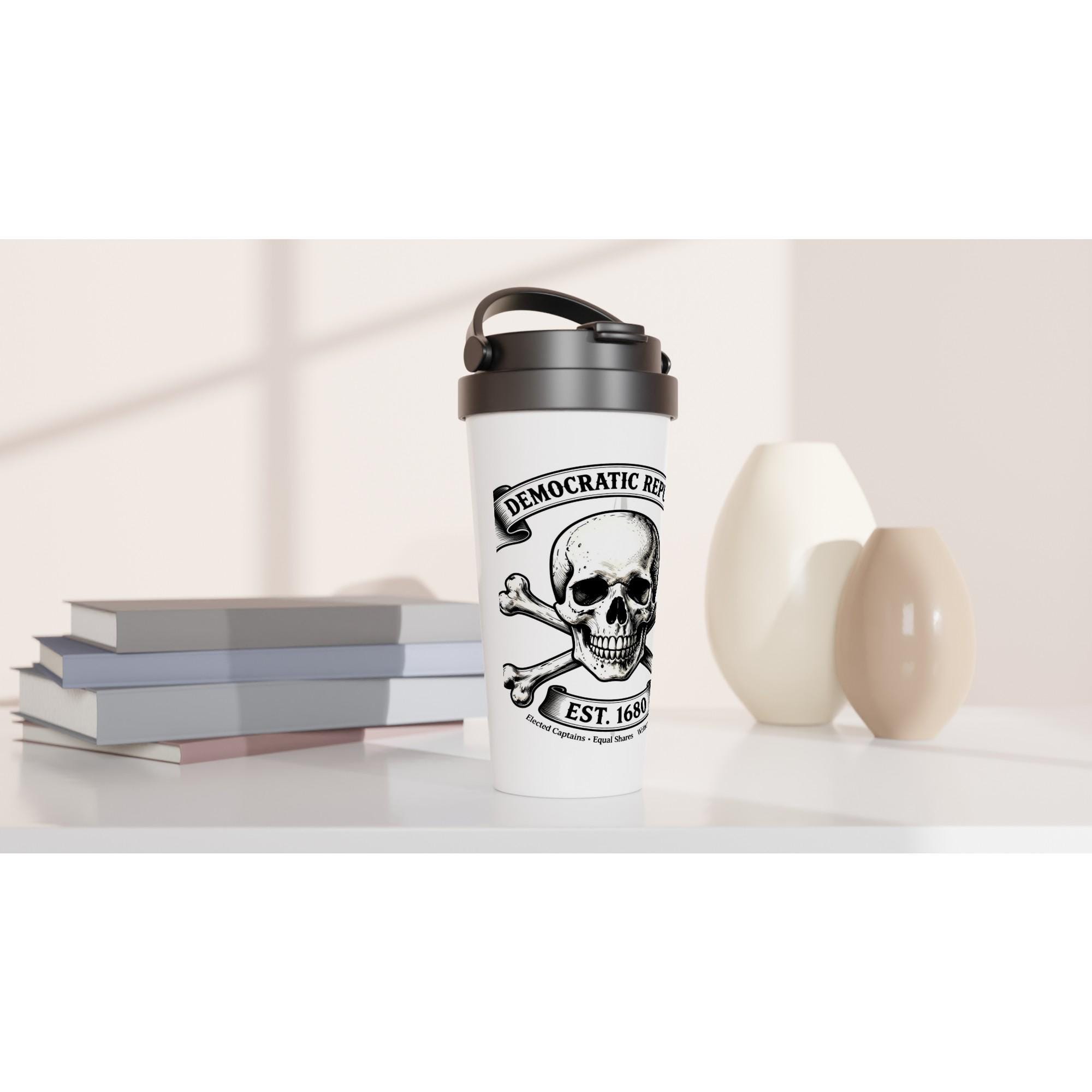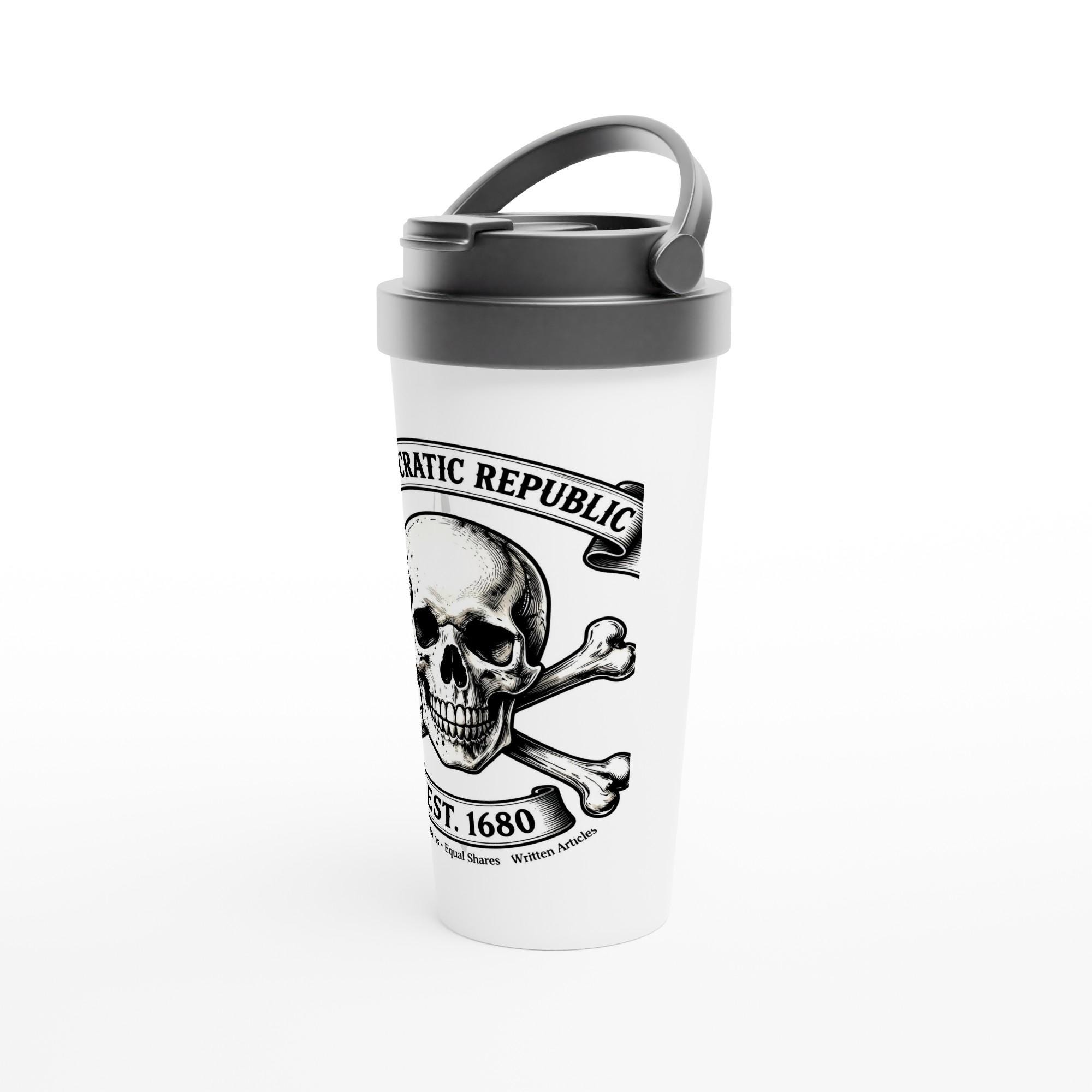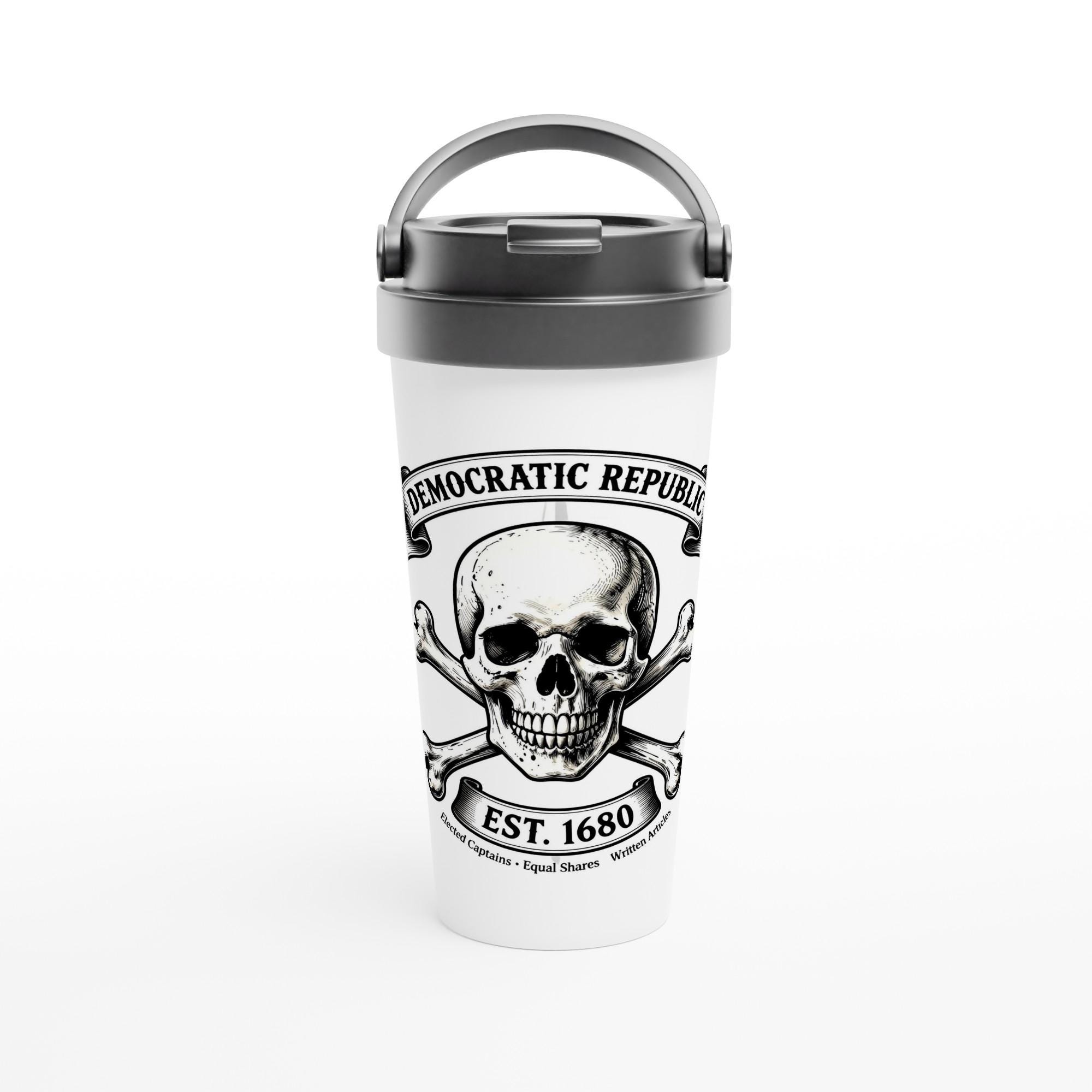 Pirate Skull Crossbones Travel Mug Democratic Republic Quote Coffee Tumbler Jolly Roger Historical Gift
